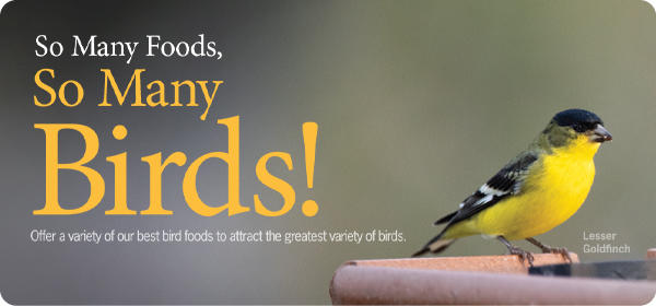 Offer a variety of our best bird foods to attract the greatest variety of birds.